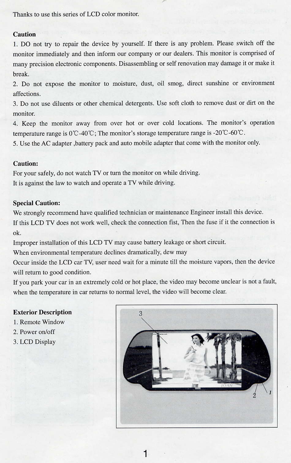 Quality 6.8" Mobile Rear View Mirror Wide Screen TFT LCD Monitor