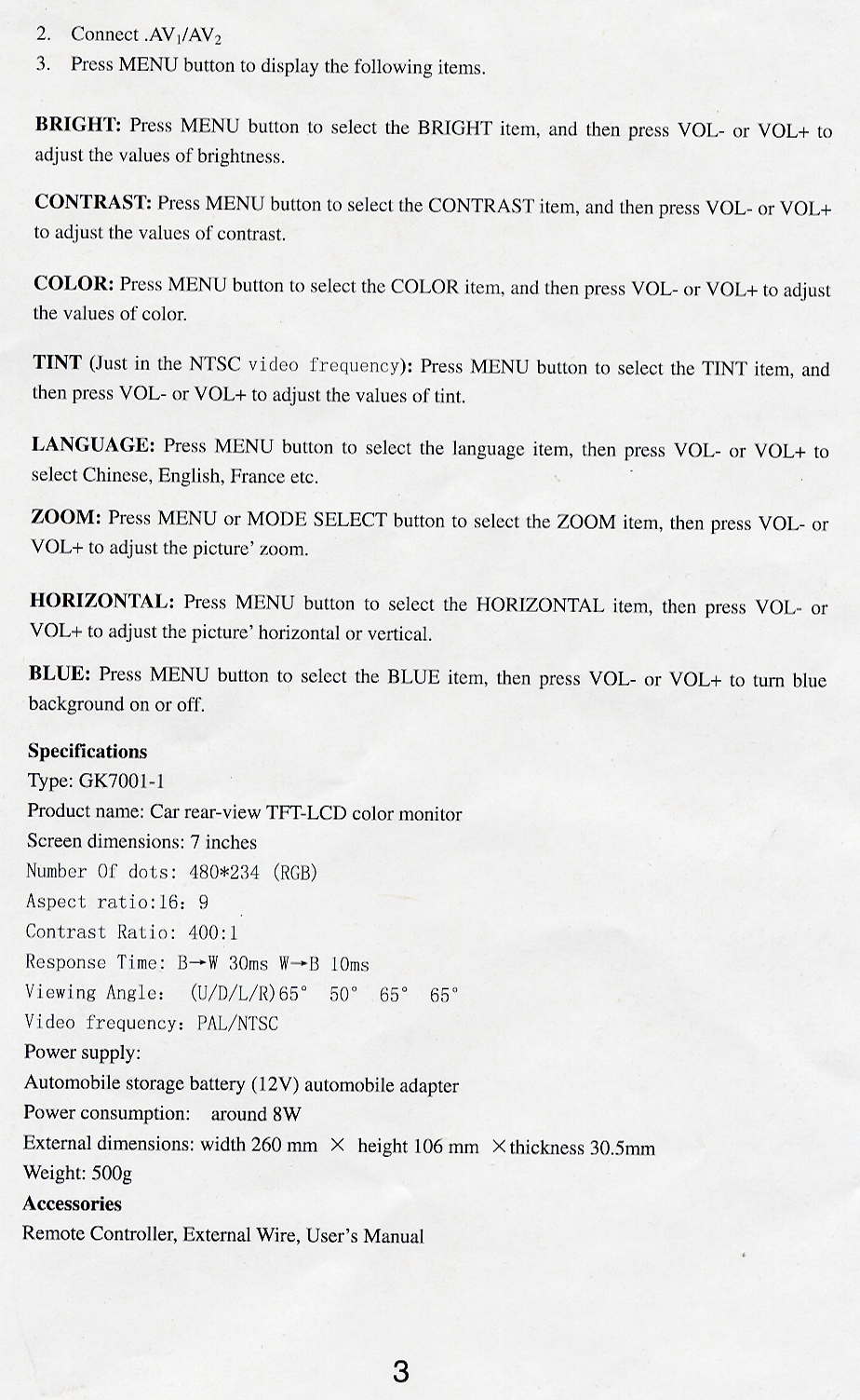 Display Screen | 6.8" Color TFT | Pixel | 480 x 234 (RGB) |